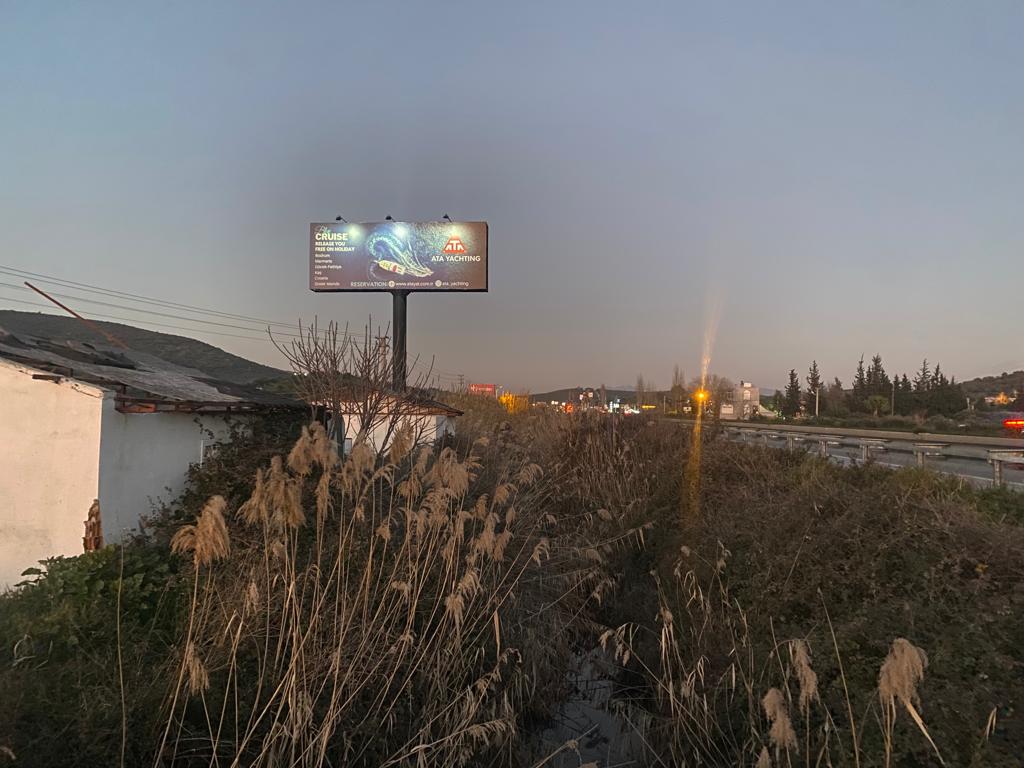 Totem Tabelamız Milas Havalimanı Bodrum Yolu Üzeri Kemikler Mevkii Konumlu 800×300 cm Çift Yönlü ve Işıklı Özelliklerindedir.